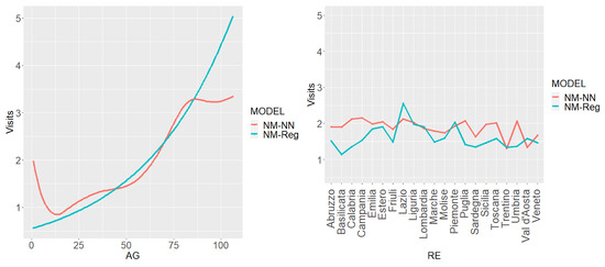 Visits: Figure 9 displays the partial dependence plots produced by the neural network and the NMR for the
