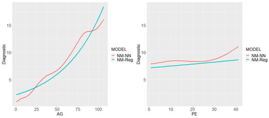 Diagnostic: Figure 11 reports the PD plots for the Diagnostic claim frequency. The age (