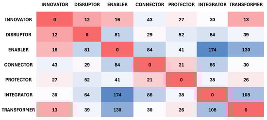 The classification followed a systematic protocol that included the following steps. First, the role criteria were defined, where each of the seven archetypes was operationalized with a clear set of indicators based on the strategic roles described in the IEBMC. Second, a data triangulation was carried out. For each firm, the classification relied on primary information from the Global FinTech (Top 100 InsurTech Reports), and cross-validation was conducted with secondary sources that were available (company websites, product descriptions, funding announcements, and use cases). Thirdly, an assignment protocol was conducted to proceed with their classification. The classification process enabled three different options: a central archetype defining each InsurTech firm, where a score of 2 indicates a significant relationship with the archetype; archetypes with a cross-activity relationship within the ecosystem, denoted by a score of 1 to represent a moderate connection; and no similarity or relationship, indicated by a score of 0, highlighting firms with no evident linkage to the given archetype.