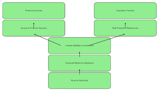 The Inclusive Growth Theory emphasizes the need for equitable economic growth that benefits all segments of society. Financial inclusion directly supports this theory by providing tools including savings, credit, and insurance to marginalized populations. Microinsurance, as a component of inclusive financial systems, ensures that vulnerable households can manage economic risks, preventing poverty traps and fostering more sustainable development (Microinsurance Network 2023). The protection afforded by microinsurance enables households to invest in productive assets and participate more fully in economic activities.