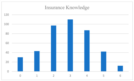 Figure 1 shows the number of correct answers to the questions about insurance knowledge. The horizontal axis represents the number of correct answers. The most common outcome was that three questions were answered correctly.