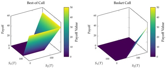 This geometric incompatibility—formalized through extreme ray theory—underlies the impossibility of expressing one in terms of the other, as visualized in Figure 2 which shows the distinct payoff profiles for basket and best-of options.