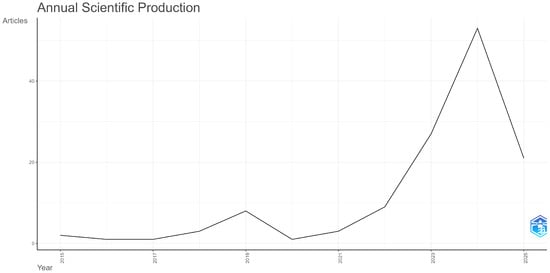 We selected the 2015–2025 period to capture the emergence and evolution of AI risk as a topic of scholarly interest. The year 2015 marks the beginning of significant regulatory and academic engagement with AI governance, coinciding with early proposals for ethical AI guidelines and the inception of discussions surrounding the EU AI Act. While the early years in our time frame contain fewer publications, they are essential for capturing foundational contributions and shifts in thematic focus over time.