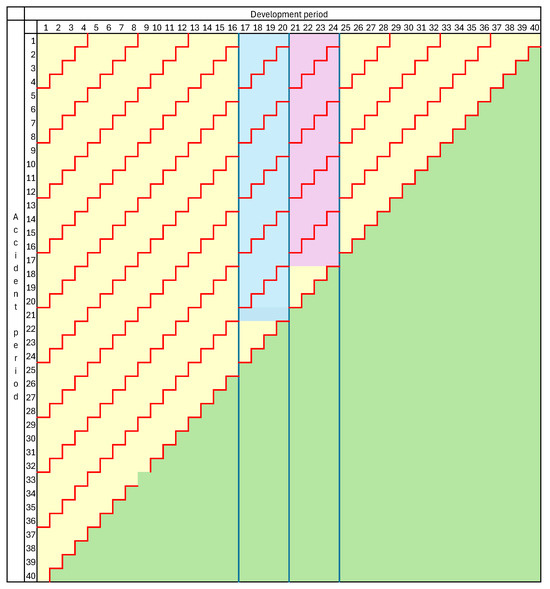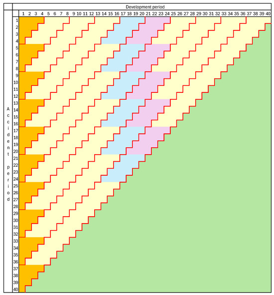 Remark 2. The above analysis has considered only the merger of development periods and . However, the analysis can be repeated for further mergers. Suppose, for example, that the original development periods were months and one wished to form quarterly periods, perhaps involving the merger of and One could commence with the merger of periods and , as just analyzed. This led to the subset cut-points One could then merge period with the first two. This would create new cut-points