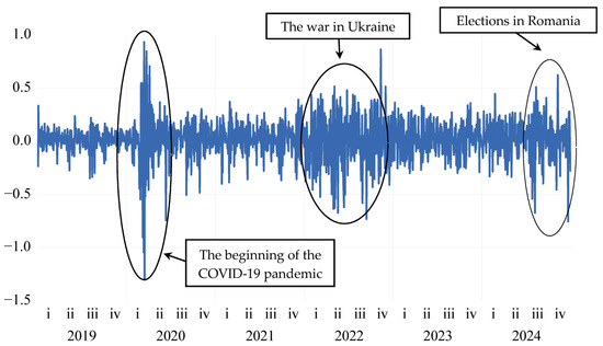 We acknowledge that the relatively short observation span of 2019–2024 may limit the external validity and generalizability of our findings over longer financial cycles. However, this period was deliberately chosen because it encompasses several exceptional and high-impact global and national shocks, including the COVID-19 pandemic, the Russia–Ukraine war, the 2024 U.S. presidential elections, and Romania’s 2024 presidential elections. These overlapping events offer a unique opportunity to analyze volatility transmission under compounded political and geopolitical stress. Rather than aiming for long-term forecasting, the study focuses on capturing dynamic, high-frequency responses to systemic disruptions in real time. While this temporal scope may constrain broader historical inference, it enhances the relevance of our conclusions for contemporary investors, policymakers, and scholars concerned with financial stability in volatile and institutionally diverse environments. In the future, expanding the database, including by integrating other political events (parliamentary elections, Brexit referendum, etc.) or other emerging markets in Central and Eastern Europe, would contribute to the external validation of the conclusions and the development of regional typologies of the response to uncertainty.