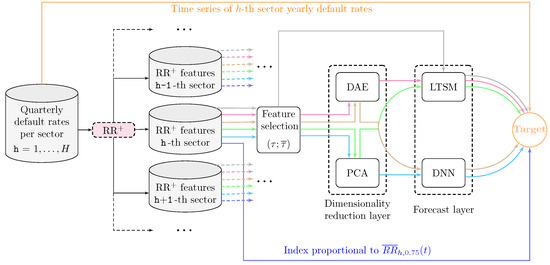 As anticipated in Section 1, we consider the RR+ framework developed in (Giacomelli and Passalacqua 2024). In Section 2.1, the RR+ model is briefly summarized. The following Section 2.2 introduces a selection of indexes returned by the model and discusses the reasonable expectations concerning their predictive power. Finally, Section 2.3 presents the ML architectures chosen to infer the future default rates from the RR+ indexes.