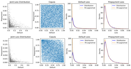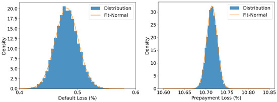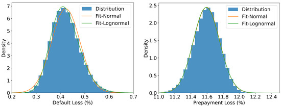 (c) Our empirical analysis applies the proposed framework to the empirical data, employing a CPH model to estimate the factor coefficients and baseline hazards. The estimated coefficients in the CPH model indicate that the systematic factors significantly influence both hazards. In terms of the influence of individual factors, the default risk is affected by loan-level credit quality, and the prepayment risk mainly depends on refinancing capacity. The out-of-sample validation reveals the good predictive performance of the model, and the estimated loss distribution is consistent with the CLT result. These findings align with the established theoretical and empirical evidence (see Calhoun and Deng 2002; Campbell and Cocco 2015). Finally, we perform the Monte Carlo simulation of portfolio default and prepayment losses based on the empirically estimated parameters. The asymptotic portfolio loss distributions display reasonable agreement with the log-normal distribution, which complies with Moody’s methodology (Moody’s Investors Service 2024).