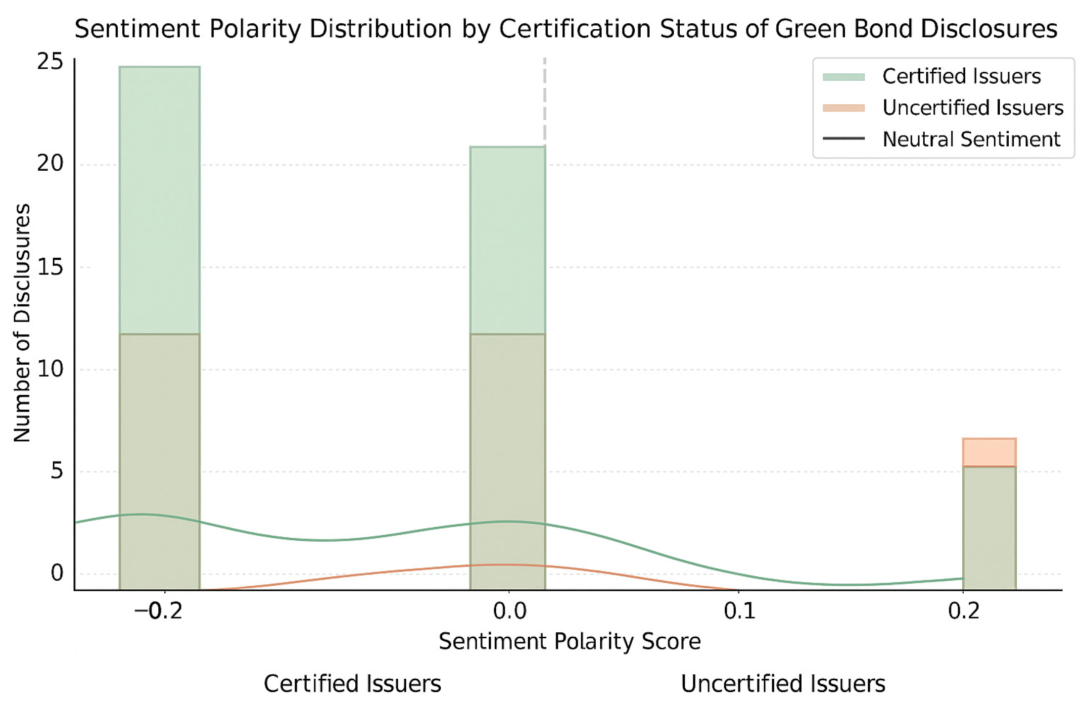 Figure 1 illustrates the distribution of sentiment polarity scores for certified and non-certified issuers.