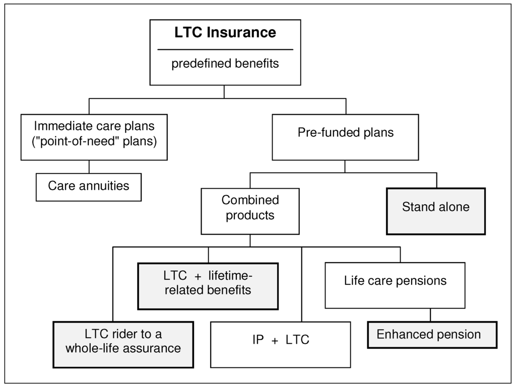 In what follows, we only address LTCI products that provide benefits with a predefined amount.