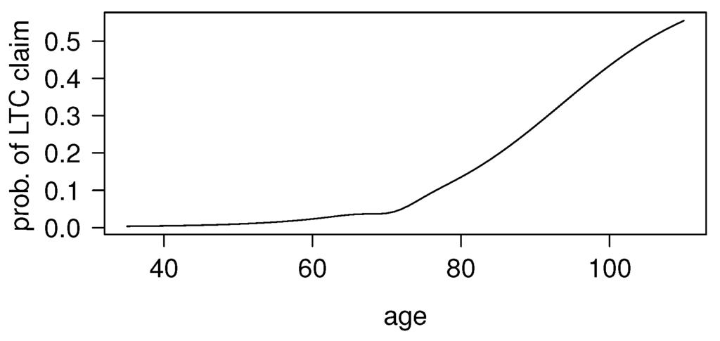 - D.J. Pritchard. “Modeling disability in long-term care insurance.” N. Am. Actuar. J. 10 (2006): 48–75. [Google Scholar] [CrossRef]