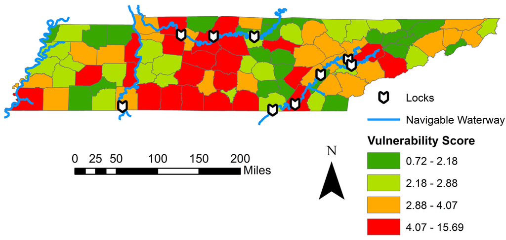 Climate change vulnerability assessments are an emerging practice, so new that there “is as yet no consensus on what constitutes “best practices” in spatial (vulnerability assessments)” (USAID, 2014 []; Mitsakis, et al., 2013 []). This paper represents the results of one of the first efforts at spatial vulnerability assessments of transportation infrastructure and provides important insights for organizations considering the impact of climate and weather events. Although the methods discussed here are illustrated using the State of Tennessee as a case study, they are applicable beyond the region and beyond the transportation sector to any assets that could be impacted by extreme weather or climate change. Application of the methods to other areas (such as low income areas) warrants    further exploration.