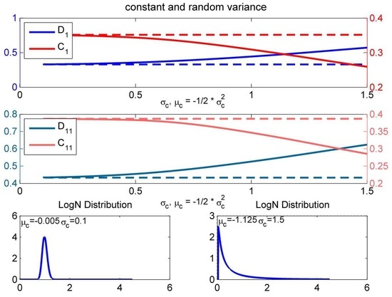 where the i-th variance is modelled through . The variables are constants, and is a random variable with a suitable distribution. Moreover, we assume that the source of randomness for the correlation is the same for all S, but still a random variable with an appropriate distribution. The correlation between and is , where and are constant scaling factors.
