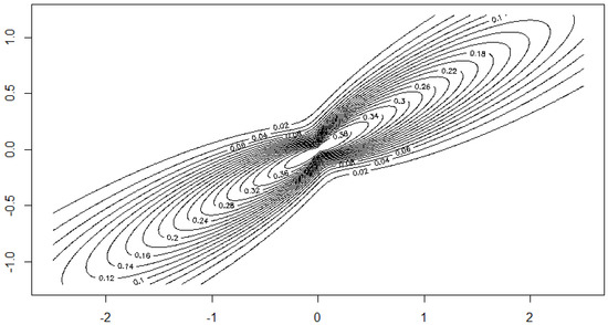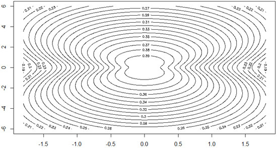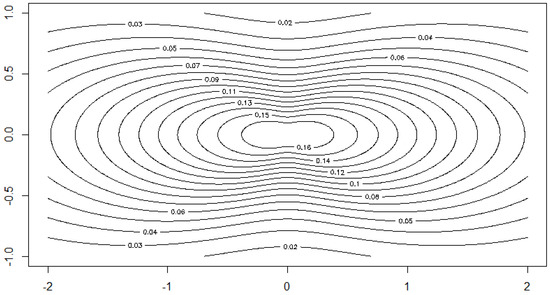 where is a parameter. The Figure 1, Figure 2, Figure 3 and Figure 4 show the contour lines of the boundary of the body for several values of a and the resulting density for one choice of a. These figures show that the distribution class includes densities with convex as well as with non-convex contours.