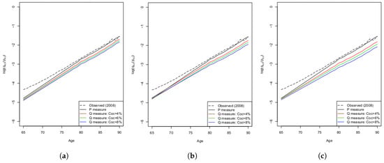 vector is calibrated on the maximum S-forward prices evaluated in 2008 considering the set of ages 65–85 and the maturities from 5–25 years. Results are given in