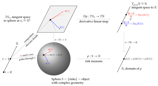 Given the definition of , we can also define an embedding , by . The map m satisfies but it is not a linear map of real vector spaces because . In fact, the image of m will generally be an infinite dimensional real vector subspace of . The lack of homogeneity is precisely what produces a diversification effect. As explained in Section 3.2, an economic view of capital requires an allocation proportional to the gradient vector at the margin. Thus capital is proportional to where is the composition of m and ,