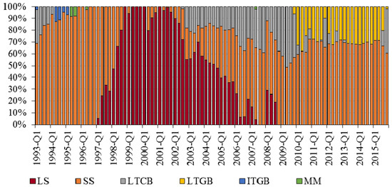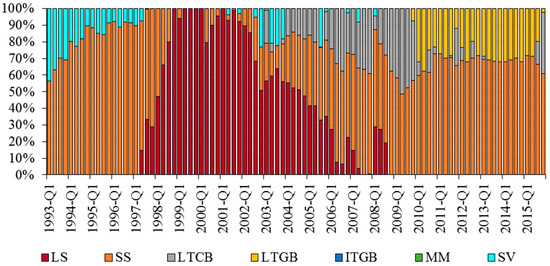 Optimal Portfolio Weights for Mean-Variance Efficient Portfolios Including SV (Q4-1988–Q4-2015).