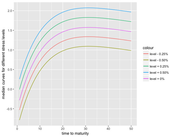 12 months-ahead median curves, for stressed yield curve level .