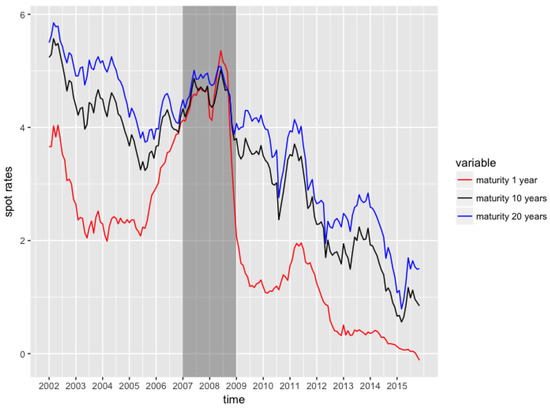 1-year, 10-years and 20-years spot rates time series data.