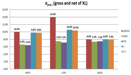 Gross and net values of premium risk volatilities ().