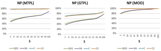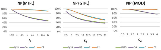 The parameter uncertainty () on the claims count has been tested and is shown in Figure 4. While QIS and DA are not affected by this systematic component, the effect of XL should decrease, the pooling risk being neglectable (as shown by and results).