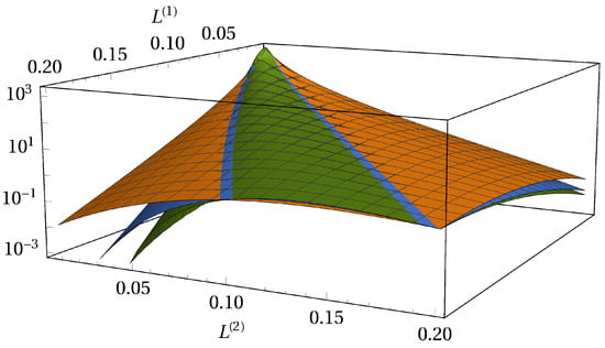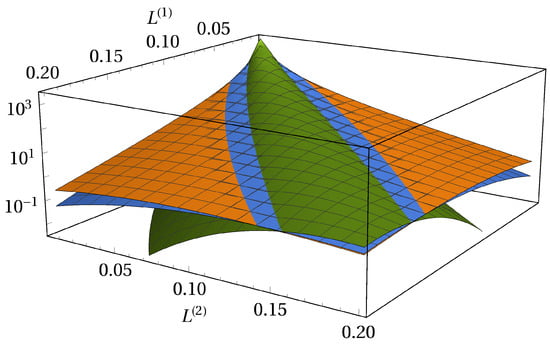 are unique and have to be calculated numerically. The dependence on and is now implicit in the functions and . The very last derivatives in Equation (43) can be done by using the implicit function theorem. They can be traced back to derivatives of and . The functions and are strictly monotonically increasing in u and z for fixed z and u, respectively. Thus, we can solve Equations (44) and (45) locally to u, where we obtain and . These equations can be derived by z using