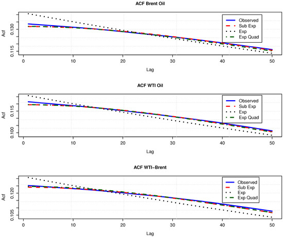 Options are priced under the risk-neutral measure, and autocovariance functions should therefore duplicate option market prices. However, if the option market is not liquid enough, an alternative solution to calibrate g k ( . ) consists of assuming that covariances under the pricing and real measures are similar (eventually adjusted by a risk premium). Under this assumption, the functions g k ( . ) { g k s u b ( . ) , g k e x p ( . ) , g k q u a ( . ) } can easily be calibrated with the method of moments matching. In this case, we minimize the quadratic spread between marginal and empirical covariances denoted by C ^ X . , X . + Δ h :