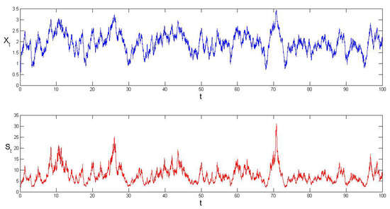 Using the Monte-Carlo, we generate sample paths for and using , and . It can be seen in Figure 1 that , and fluctuate around the equilibrium level , and respectively.