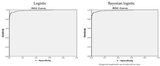 The ROC curve that gauges predictive ability of models has also been plotted and it shows a higher area under curve in case of Bayesian logistic i.e., 98.9% in contrast to 98.6% obtained employing standard logit model (Figure 1). The results show Bayesian logistic model to be more accurate in terms of correctly classifying firms.