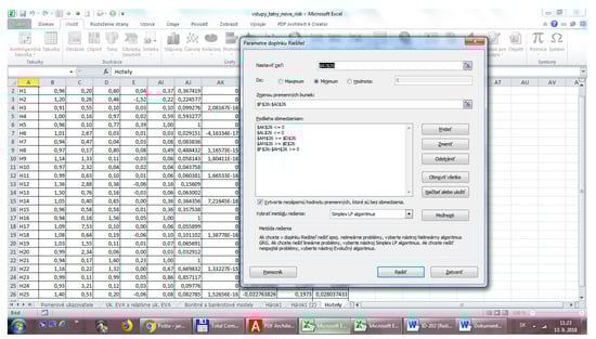 We addressed this model in MS Office (Excel Solver) while the example of data processing is shown in Table 3.