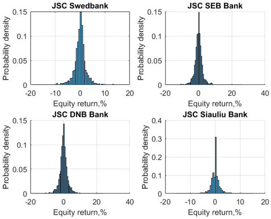 k coefficients showed that Lithuanian banks do not have high stock return volatility and high risk. The stock return histograms of Lithuanian banks for the years 2008–2016 are presented in