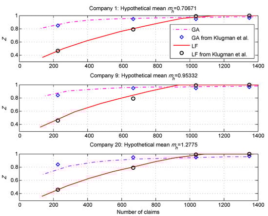 - Let and be the credibility factors for company h when there are d claims computed via the LF and GA methods, respectively. We computed these factors in Section 5.3.