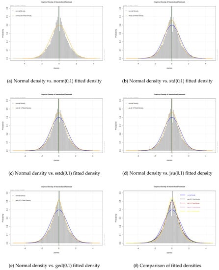 where the probability distribution function of the return innovations , is strictly monotone or has a generalised inverse of the cumulative distribution function. In this paper, is assumed to follow five probability distributions namely the Normal, Student’s-t, Skewed Student’s-t, JSU and GED.
