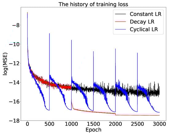 The training process aims to learn the optimal weights and biases in Equation (13) to make the loss function as small as possible. The process can be formulated as an optimization problem,
