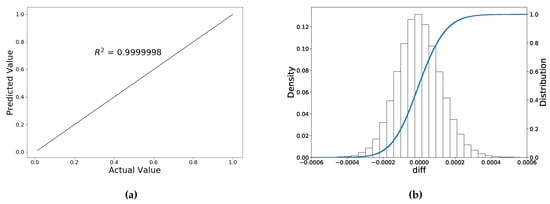 Two implied volatility ANN (IV-ANN) solvers are trained based on the dataset in Table 6. After that, Table 7 compares the performance of the trained ANNs with the scaled and original (unscaled) input, where it is clear that scaling improves the ANN performance significantly. Figure 8 shows the out-of-sample performance of the trained ANN on the scaled inputs. The error distribution also approximately follows a normal distribution, where the maximum deviation is around , and most of implied volatilities equal their true values.