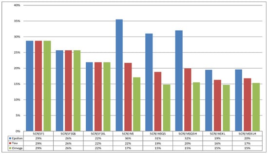 On the other hand, an higher weight of “long tail” LoBs in the portfolio shows the most interesting results. Here we have that is greater than only in the gross of reinsurance case. QS results are very close to them while in the case of XL we have an lower than , even if they are lower than the gross SCRs.