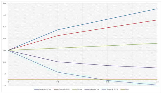Equation (31) can be generalized accordingly with a confidence level in a time horizon , and then we obtain for the multi-year SCR Premium Risk: