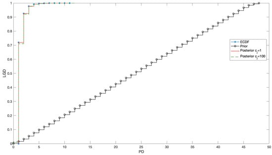 Please notice that our purpose is to show that the bivariate urn model actually works. The present section has no ambition of being a complete empirical study on the PD–LGD dependence in the Freddie Mac’s or Maio’s datasets.