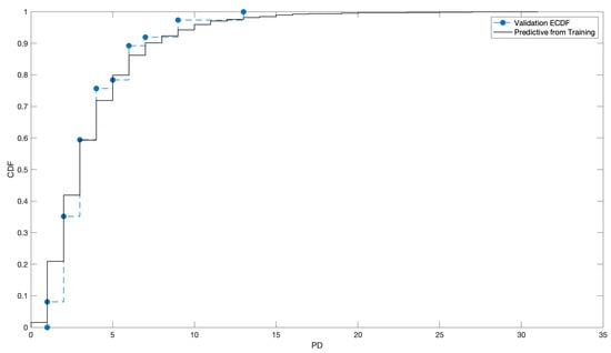 where Var is the variance, Cov the covariance, , and similarly , . Therefore, with the bivariate urn construction, we can only model positive dependence. Again, this is totally in line with the purpose of our analysis—the study of wrong-way risk that, by definition, is a positive dependence between PD and LGD—and, with the empirical literature, as discussed in Section 1. However, it is important to stress that the model in Equation (6) cannot be used when negative dependence is possible.
