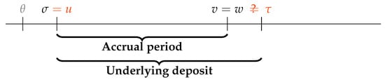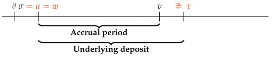 The valuation formula (Equation (1)) is written as if the LIBOR benchmark were always published in and thus available for payment in w. The current expectation, described in the Introduction, is that the benchmark may stop being published at some stage. We denote the announcement date of the discontinuation by a and the discontinuation date itself by d. Those dates are still unknown and can be modelled with stopping times. If a discontinuation were to take place, in today’s legal wording of the contract, there is no guarantee that something meaningful would replace the LIBOR figure. The actual valuation formula should be