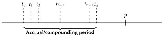 In Equation (6), what would be the dates and with respect to the dates , , , u, v and w described in Section 2? As the adjusted RFR is a replacement of LIBOR, it should be based only on LIBOR related dates and not on the derivative specific dates. The most natural ones would be that , the fixing date, is completely ignored and the overnight composition is done on the theoretical deposit period of the LIBOR, with and . In this way, all the occurrences of LIBOR are replaced with the same figure. Even if this is natural, this precision is not given in the ISDA documents—neither in the consultation document, nor in the document describing the results. The reason of the absence of the precision can probably be seen in Figure 1 and Figure 2. The payment date w is, in many cases, before the end of the theoretical deposit in . The minimal requirement is that the amount paid is known when paid, i.e., that is -measurable. This requirement is not satisfied with the natural choice of dates described above. The measurability requirement may appear as a technical term of no practical importance, but it is not; it is only the precise description of a very practical requirement that before you are able to pay an amount, you need to know what amount should be paid.