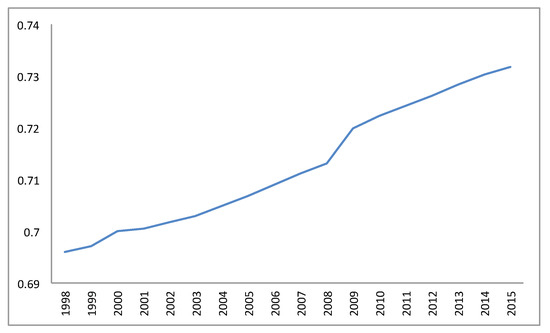 Table A2 in the Appendix A presents descriptive statistics of the variables for the entire dataset. We give the mean of the market share for each year which ranges between 5.2–6.3% and basic statistics (the mean, minimum, maximum and standard deviation) of the dependent variable , the explanatory variables and as well as and .