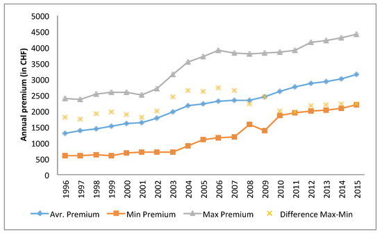 Premium range in Switzerland, 1998–2015.