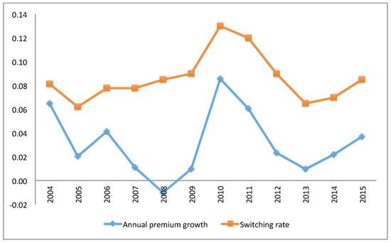 Switching rates and annual premium growth from 2004 to 2015.