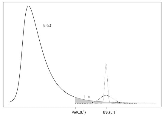 - By Example 1, the question which copula C maximizes is thus, at least approximately, the question of which reordering of realizations of each of leads to . For any C, the probability of exceeding is (at most, but for simplicity let us assume exactly) . How that probability mass is distributed beyond depends on C. If we find a C such that has a rather small variance , more probability mass will be concentrated around a single point which can help to pull further into the right tail and thus increase ; Figure 2 provides a sketch in terms of a skewed density. If that single point exists and if , then it must be expected shortfall, which provides an upper bound to .
