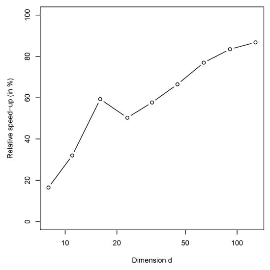 Relative speed-up in percentage of over as a function of the dimension for the running example introduces in Example 4.