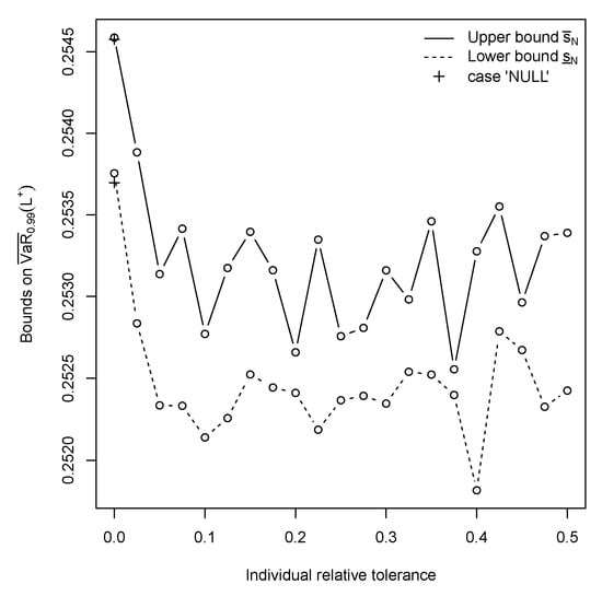 Also, we can investigate how much the bounds and change with changing individual relative tolerance. Figure 9 motivates the use of 0 as individual relative tolerance; this is often quite a bit faster than and provides similar bounds.