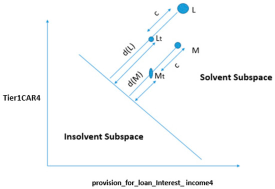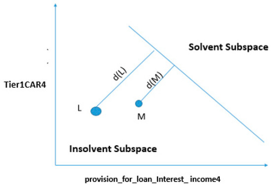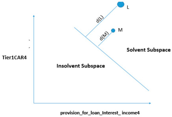 In the second part of the feature selection method, we fed 16 features, given in Table 2, into SVM, and we refined the input features through the shrinking process. At each step, we compared the accuracy of the base feature set with all input features created by eliminating one input feature from the base input feature set. For instance, if the base feature set contained “p” features, we equated the base feature set with all probable sets of (p−1) input features. If the performance of the base feature set was not the best, then a (p–1) size feature set that gives the highest improvement on the base feature set swapped the base feature set in the next phase of iteration. This process remained until no progress was achieved by reducing the base feature set. Here, we tried only the two most common kernel functions: linear and radial basis function kernel (RBFK). We started iterations by taking all combinations from 16 features to obtain the best input in support vector machine with the linear kernel (SVMLK) and RBF kernel (SVMRK) at a time. SVMLK had the best accuracy with two explanatory features, Tier1CAR(t−1) and provision_for_loan_Interest_income(t−1), whereas SVMRK had the best accuracy with four explanatory features—subordebt_TA(t−1), Tier1CAR(t−1), provision_for_loan_Interest_income(t−2), and noninterest_expences_Int_income(t−3)—out of 16 features.
