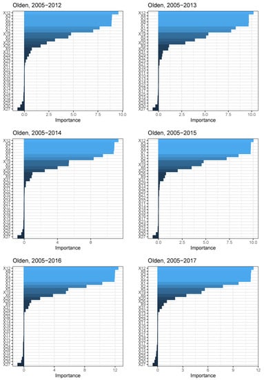 ANN variables’ importance across the learning phases. Note: The figure shows the importance of the input variables (from X to X) for each learning phase, according to the procedure proposed by Olden et al. (2004).