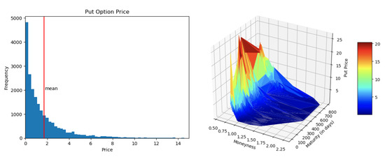 For our pricing of American put options, we collected market data on put prices (output), but also on the same inputs the model in Equation (1) requires: price of the underlying asset, volatility, interest rate, dividend yield, options’ strike price, and maturity. As we will see in Section 4.4, in our simplest NN, some of these inputs will not even be considered.