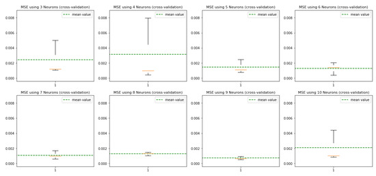 For both of our NN models, in order to start the learning process, we gave random weights, from the normal distribution with mean equal to zero and standard deviation equal to , to the hidden nodes. The starting values of the hidden nodes were a random choice and immediately changed after the first learning cycle ended. In both cases, we also considered a learning rate with decay per epoch of 1 × 10. The learning rate defined the number of the corrective steps that the algorithm took to adjust for errors obtained for each observation and led to a trade-off: a higher learning rate reduced the training time, at the cost of lower accuracy, while a lower learning rate took longer, but was more accurate.